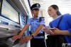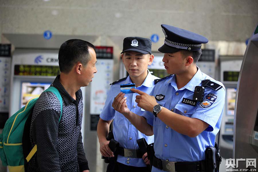 民警在南充火車(chē)站向旅客講解自助購(gòu)票時(shí)銀行卡的安全使用方法 -