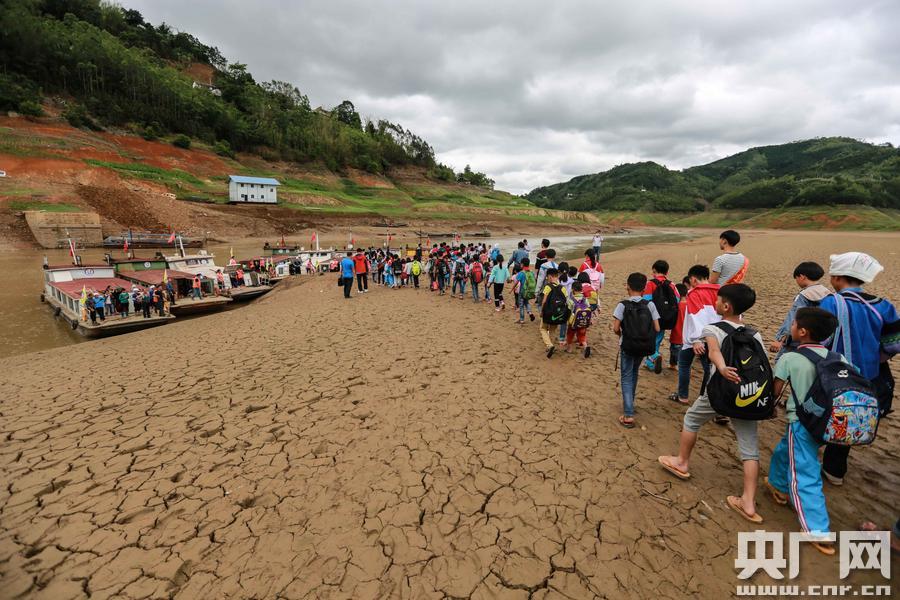 每周五,西林縣八大河希望學(xué)校的孩子們排隊(duì)乘坐免費(fèi)“校船”回家 -