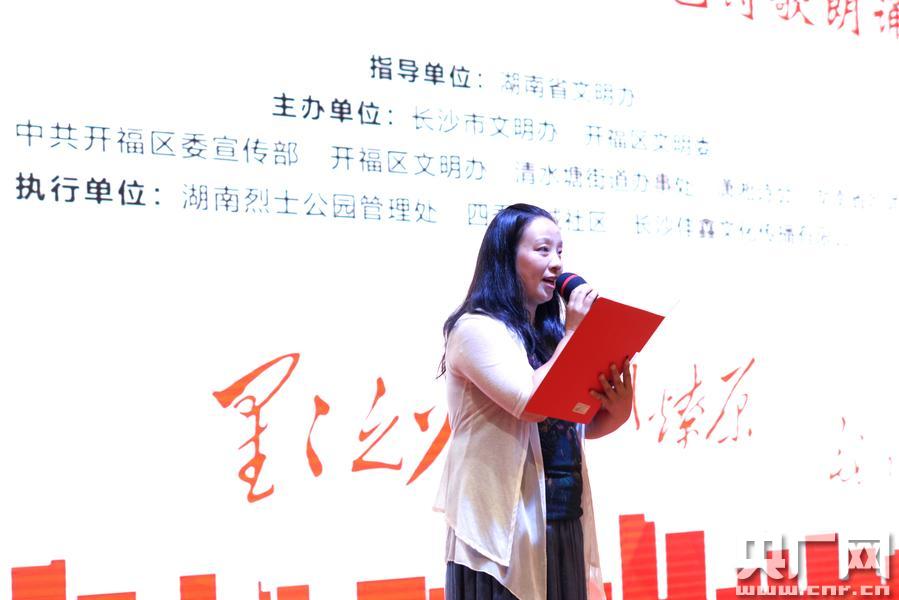 瀟湘詩(shī)會(huì) 夏至:在詩(shī)歌里傳承過(guò)往 央廣網(wǎng)長(zhǎng)沙6月28日消息(記者傅蕾 通訊員熊曉宇)在夏至過(guò)后、“七一”到來(lái)前的第一個(gè)周末,瀟湘詩(shī)會(huì)之24節(jié)氣夏至詩(shī)會(huì)?“光榮與夢(mèng)想”紅色詩(shī)歌朗誦會(huì)在長(zhǎng)沙烈士公園舉行。夏為大、至為極,在一年之中陽(yáng)光最充足的節(jié)氣里,陶笛悠揚(yáng),詩(shī)意濃濃,感念著先烈的鐵肩赤膽,所有的情感正完美地開(kāi)放。 光榮:讓陽(yáng)光照射進(jìn)深水 “攜來(lái)百侶曾游/憶往昔崢嶸歲月稠/恰同學(xué)少年/風(fēng)華正茂/書(shū)生意氣/揮斥方遒/指點(diǎn)江山/激揚(yáng)文字/糞土當(dāng)年萬(wàn)戶侯/曾記否/到中流擊水/浪遏飛舟! 來(lái)自開(kāi)福區(qū)清水塘街道四季花城社區(qū)的四位小朋友用稚嫩的聲音重復(fù)著偉人近百年前的壯語(yǔ),拉開(kāi)了今天瀟湘詩(shī)會(huì)的序幕。1921年的七月,南湖蕩漾,一個(gè)巨人破天而出。時(shí)光流轉(zhuǎn),在建黨九十六周年之際的烈士公園,一首首詩(shī)歌勾勒出英雄的吶喊與沉默,穿過(guò)時(shí)光漫漫,像陽(yáng)光照射進(jìn)深水,映射出無(wú)上光榮。 “你是萬(wàn)民景仰的長(zhǎng)者/你是頂天立地的英雄/橫刀立馬/氣壯山河/你用鋼鐵鑄就輝煌人生......”一首由長(zhǎng)沙市劉少奇故里管理局局長(zhǎng)、劉少奇紀(jì)念館館長(zhǎng)、詩(shī)人羅雄寫(xiě)下的《在彭德懷塑像前》,呈現(xiàn)出一個(gè)有血有肉、有情有義的彭老總。 湖南師范大學(xué)的本科在讀學(xué)生余楨旎一襲紅裙讀著毛澤東的《七律?長(zhǎng)征》,感念出革命先輩的艱辛與樂(lè)觀,“詩(shī)人就是詩(shī)人,他永遠(yuǎn)會(huì)用黑色的眼睛去尋找光明,所以不管環(huán)境多艱難,局勢(shì)多危急,他的詩(shī)中永遠(yuǎn)有著革命樂(lè)觀主義精神。” 一首首詩(shī)歌頌揚(yáng)烽火革命年代里的純真與壯闊,正如瀟湘詩(shī)會(huì)總策劃、詩(shī)人胡述斌所闡釋?zhuān)盀t湘詩(shī)會(huì)創(chuàng)辦至今31年,一直都在堅(jiān)持弘揚(yáng)主旋律、傳播正能量、贊頌真善美的定位! 傳承:在時(shí)光的詩(shī)行里對(duì)話 詩(shī)歌傳遞著先烈的故事與精神,讀詩(shī)人在字里行間感念過(guò)往,彷佛穿越了歲月長(zhǎng)廊,聽(tīng)見(jiàn)了歷史云煙里先輩們的訴說(shuō)低喃。 剛剛從砂子塘泰禹小學(xué)畢業(yè)的向昕宇在詩(shī)會(huì)上朗誦了一首《絲路張騫》,“你明白/你是大漢人/你應(yīng)有鐵血男兒的意志與不屈/應(yīng)該承擔(dān)起統(tǒng)一天下掃盡匈奴的責(zé)任……”飽滿的情緒、穩(wěn)重的臺(tái)風(fēng),個(gè)頭小小的他,卻好像讓現(xiàn)場(chǎng)的詩(shī)友們看到了漫天黃沙中一騎一鞭一行囊的使者張騫。 向昕宇說(shuō):“張騫排除萬(wàn)難最終見(jiàn)到了日夜思念的龍顏,展現(xiàn)了他對(duì)國(guó)家的一片忠心,我覺(jué)得非常勵(lì)志,也能給我們以正能量,教會(huì)我們堅(jiān)持、排除艱險(xiǎn)。” 讀詩(shī)人從詩(shī)歌里傳承過(guò)往,詩(shī)會(huì)的主辦方也一直在堅(jiān)持著對(duì)詩(shī)歌本身的傳承。成立于1986年5月的瀟湘詩(shī)會(huì),曾在1990年受到“下海熱”的沖擊,“人們的心思難以聚集在詩(shī)歌上,沒(méi)有人再去主動(dòng)組織詩(shī)會(huì),”胡述斌感到痛心又無(wú)奈,“但是在我心里,湖南詩(shī)歌的火種并未熄滅。” 時(shí)間會(huì)證明詩(shī)的魅力。從今年年初開(kāi)始的24節(jié)氣雨水主題詩(shī)會(huì)到今天的夏至詩(shī)會(huì)“光榮與夢(mèng)想”紅色詩(shī)歌朗誦會(huì),瀟湘詩(shī)會(huì)今年已連續(xù)成功舉辦了十場(chǎng),每舉辦一次,就會(huì)有更多的人加入,現(xiàn)在整個(gè)團(tuán)隊(duì)已經(jīng)有上百人。 會(huì)場(chǎng)上,志愿者們忙碌不停,擺水、調(diào)音、引導(dǎo)……“大家都樂(lè)意做‘詩(shī)歌義工’,這是因?yàn)橛幸环N詩(shī)情在我們血液中涌動(dòng),”胡述斌說(shuō),“他們的服務(wù)一方面出于愛(ài)好,更多的是為了詩(shī)歌藝術(shù)的傳承,F(xiàn)在詩(shī)會(huì)活動(dòng)的舉辦單位不斷下移,也是為了讓詩(shī)歌不斷接地氣,走向民間,成為一種民間行動(dòng)! 在胡述斌看來(lái),瀟湘詩(shī)會(huì)里沒(méi)有所謂主角、主編、大腕,來(lái)自協(xié)會(huì)、社區(qū)、政府,各行各業(yè)的人一起讀詩(shī)、品詩(shī),感受詩(shī)歌的魅力,聽(tīng)見(jiàn)詩(shī)句里的真實(shí)與美好,善良與向上,每個(gè)人都是詩(shī)歌的“寵兒”。 在湖南吟誦學(xué)會(huì)會(huì)員雷燁吟唱毛澤東著名詩(shī)詞《卜算子?詠梅》的時(shí)候,臺(tái)下來(lái)自四季花城社區(qū)的居民們也在跟著輕聲哼唱。 “讓詩(shī)歌在大地上飛揚(yáng),那我們的文化才會(huì)有傳承,人的心才能夠凝結(jié)起來(lái),”湖南吟誦學(xué)會(huì)副會(huì)長(zhǎng)兼秘書(shū)長(zhǎng)曹琴女士說(shuō),“我們都應(yīng)該做有文字情懷的人! 夢(mèng)想:二十一世紀(jì)通天大道 “一個(gè)民族壓抑了兩百年的夢(mèng)/在黎明破曉前/即將到來(lái)/18顆紅星閃爍的星星啊/照耀我中華民族直面風(fēng)暴/走向偉大復(fù)興的通天大道……” 詩(shī)歌不僅僅是傳承,更寄托著無(wú)數(shù)的憧憬,蘊(yùn)藏著詩(shī)人一個(g