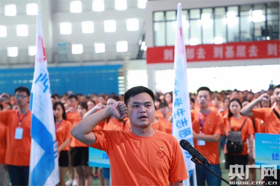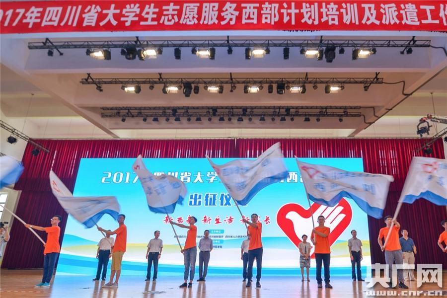 四川西部計(jì)劃出征儀式舉行 央廣網(wǎng)成都7月21日消息(記者賈宜超)7月21日上午,2017年四川省大學(xué)生志愿服務(wù)西部計(jì)劃出征儀式在成都師范學(xué)院舉行,四川省副省長(zhǎng)楊興平宣布2017年四川省大學(xué)生志愿服務(wù)西部計(jì)劃正式出征。據(jù)悉,今年,四川省共有3080名西部計(jì)劃志愿者在全省134個(gè)服務(wù)縣服務(wù),其中續(xù)簽志愿者1650名,新增志愿者1430人。 共青團(tuán)四川省委書記劉會(huì)英在出征儀式上說(shuō),西部計(jì)劃這項(xiàng)工作是鼓勵(lì)和引導(dǎo)高校畢業(yè)生到基層建功立業(yè)、鍛煉成長(zhǎng)的國(guó)家項(xiàng)目、示范項(xiàng)目、精品項(xiàng)目。十四年來(lái),四川省共招募派遣來(lái)自全國(guó)各地近400所高校的28000余名大學(xué)應(yīng)屆畢業(yè)生參與到“西部計(jì)劃”中來(lái),大學(xué)生志愿者能力素質(zhì)得到鍛煉提高,贏得了基層干部群眾的好評(píng)。劉會(huì)英表示,希望西部計(jì)劃志愿者胸懷理想、堅(jiān)定前行,磨練意志、勇于實(shí)踐,希望志愿者相互間也要多關(guān)心、多幫助、多配合,形成一個(gè)有凝聚力、有戰(zhàn)斗力,充滿友愛互助的優(yōu)秀志愿者團(tuán)隊(duì)。 出征儀式上,到場(chǎng)領(lǐng)導(dǎo)為志愿者授旗,全體志愿者面對(duì)西部計(jì)劃志愿者旗幟莊嚴(yán)宣誓。即將到?jīng)錾街堇撞ǹh服務(wù)的志愿者崔照清代表2017年新招募西部計(jì)劃志愿者發(fā)言。她表示將抓好接力棒,跑好這一程,站好這一崗。