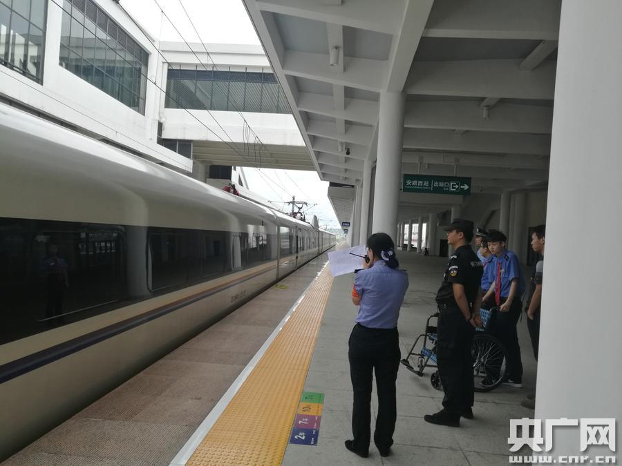 。ㄍ跷凝 柴玲玲攝) 央廣網(wǎng)重慶8月5日消息(記者劉湛 通訊員王文龍 柴玲玲)8月5日,9點(diǎn)22分,安順西站接到列車(chē)行調(diào)電話通知“安順西站,現(xiàn)G2112次列車(chē)上有一名68歲女性,突發(fā)疾病,需臨時(shí)?磕阏1站臺(tái)8道”。隨即,車(chē)站工作人員郭夢(mèng)鑫詢問(wèn)“是否有同行人,需要120不”?“有,目前不需要,在2號(hào)車(chē)廂的位置,提供一個(gè)輪椅,車(chē)站協(xié)助送旅客出站”。 接到通知后,綜控人員立即通知車(chē)站值班員:“G2112次要在我站交一名重病旅客,有同行人,需要提供輪椅”。車(chē)站值班員回復(fù)到收到后,并要求再次確認(rèn)一下是否需要120救護(hù)及列車(chē)具體幾點(diǎn)進(jìn)站”?收到的回答是不需要,列車(chē)預(yù)計(jì)9:44分到站。 面對(duì)突發(fā)情況,車(chē)站值班員不敢怠慢,立即電話告知段調(diào)度指揮中心客調(diào),并向值班站長(zhǎng)劉貴匯報(bào)。 9:28分,車(chē)站站長(zhǎng)帶領(lǐng)客運(yùn)值班員、車(chē)站派出所值班所長(zhǎng)及客運(yùn)員推輪椅在1站臺(tái)2號(hào)車(chē)廂的位置等候列車(chē)到達(dá)。 就在此時(shí),安順西車(chē)站綜控員再次接到行調(diào)電話通知,說(shuō)旅客病情加重需要120急救。面對(duì)這一突發(fā)情況,車(chē)站立即通知安順貴航集團(tuán)302醫(yī)院120急救中心,并安排車(chē)站工作人員在路口引導(dǎo)120救護(hù)車(chē)。 一場(chǎng)生命接力就此上演。 9:51分,G2112列車(chē)緩緩使進(jìn)車(chē)站,客運(yùn)值班員立即呼叫列車(chē)長(zhǎng):“G2112次列車(chē)長(zhǎng),安順西站客運(yùn)值班員呼叫,已到2號(hào)車(chē)廂前門(mén)位置準(zhǔn)備就緒”。 “G2112次列車(chē)長(zhǎng)收到,請(qǐng)到2.3號(hào)車(chē)廂的連接處,3號(hào)車(chē)廂后門(mén)接旅客”。 隨即,已在站臺(tái)等候工作人員立刻將輪椅推到指定位置,靜靜的等待列車(chē)進(jìn)站。 9:54分,G2112次列車(chē)停穩(wěn),客運(yùn)值班員立即與列車(chē)長(zhǎng)辦理完交接手續(xù),安排車(chē)站客運(yùn)人員為旅客辦理退票手續(xù),同時(shí),車(chē)站站長(zhǎng)帶領(lǐng)客運(yùn)員將旅客迅速抬上輪椅,立即將旅客從車(chē)站的應(yīng)急消防通道門(mén)推送到站前廣場(chǎng),并協(xié)助120醫(yī)護(hù)人員將老人送上救護(hù)車(chē)。 看著老人上了救護(hù)車(chē),大家懸著的心才放下。后經(jīng)了解,該名旅客 68歲,8月5日與老伴在昆明南站乘坐G2112次列車(chē)前往貴陽(yáng)北,當(dāng)列車(chē)開(kāi)出盤(pán)州站后老人突感不適,胃部脹痛,隨后疼痛加重,經(jīng)列車(chē)與調(diào)度聯(lián)系,將本應(yīng)在安順西通過(guò)的G2112次列車(chē),臨時(shí)停靠車(chē)站1站臺(tái)8股道,在站車(chē)的有效接力下,目前老人已在安順貴航集團(tuán)302醫(yī)院進(jìn)行治療。