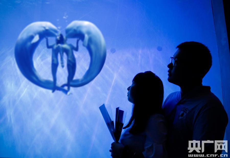 大連50對(duì)情侶共賞《白鯨傳奇》過七夕(央廣網(wǎng)發(fā) 孫亞楠 攝) -