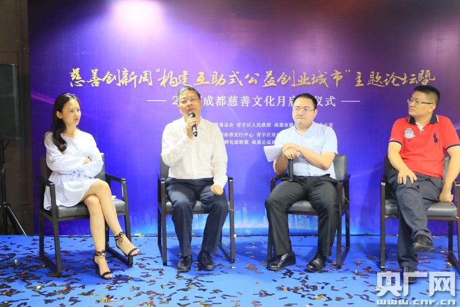 構(gòu)建互助式公益創(chuàng)業(yè)論壇(央廣網(wǎng)記者 韓民權(quán) 攝) 央廣網(wǎng)成都9月1日消息(記者韓民權(quán))8月31日,成都市隆重舉行慈善創(chuàng)新周“構(gòu)建互助式公益創(chuàng)業(yè)城市”主題論壇暨2017成都慈善文化月啟動(dòng)儀式。成都市慈善總會(huì)常務(wù)副會(huì)長、市民政局副局長劉永昌出席會(huì)議。慈善組織、愛心企業(yè)、社會(huì)各界愛心人士約60余人參加會(huì)議。 儀式上,成都市民政局副局長劉永昌、成都市慈善總會(huì)秘書長榮道清、靈創(chuàng)孵化董事長姜華軍共同啟動(dòng)2017成都慈善文化月活動(dòng)。隨后,舉行了慈善創(chuàng)新周“構(gòu)建互助式公益創(chuàng)業(yè)城市”主題論壇。 慈善創(chuàng)新周“構(gòu)建互助式公益創(chuàng)業(yè)城市”主題論壇推出專業(yè)級公益創(chuàng)業(yè)孵化平臺(tái)——成都市公益慈善創(chuàng)新孵化器,依托專業(yè)團(tuán)隊(duì)運(yùn)行孵化器,為更多想創(chuàng)業(yè)、缺平臺(tái)、缺資源的公益領(lǐng)域的創(chuàng)業(yè)者提供幫助,而慈善公益創(chuàng)業(yè)因其背景特殊、廣泛被關(guān)注、資源高度支持的特殊屬性,美麗的成都必將孕育出一批具有市場競爭力、推動(dòng)成都公益創(chuàng)新發(fā)展的優(yōu)秀企業(yè)與品牌。2017年“慈善與雙創(chuàng)”更加落地——“構(gòu)建互助式公益創(chuàng)業(yè)”將由三個(gè)版塊予以構(gòu)成:投資機(jī)構(gòu)參與共建慈善互助創(chuàng)業(yè)平臺(tái);障礙人士創(chuàng)業(yè)者的產(chǎn)品展示及資源渠道架構(gòu);科技創(chuàng)新推動(dòng)障礙人士創(chuàng)業(yè)生活更加美好;顒(dòng)以啟動(dòng)儀式——論壇——項(xiàng)目路演——投資者投資的形式,推動(dòng)公益慈善領(lǐng)域創(chuàng)新、創(chuàng)業(yè)。 據(jù)悉,2017成都慈善文化月活動(dòng)是由成都市民政局指導(dǎo),市慈善總會(huì)、市慈善事業(yè)發(fā)展辦公室、成都公益慈善聯(lián)合會(huì)共同主辦的系列慈善活動(dòng),今年是開展第六個(gè)年頭。從去年開始,結(jié)合“9·5”中華慈善日和“9·9”公益日,將10月份“成都慈善文化月”調(diào)整至9月份舉行。 2017年成都慈善文化月一直持續(xù)到9月底,將先后舉行2017成都慈善文化月啟動(dòng)儀式暨慈善創(chuàng)新周“構(gòu)建互助式公益創(chuàng)業(yè)城市”主題論壇、中華慈善日“為愛騎行”暨安全文化進(jìn)社區(qū)活動(dòng)、支持社會(huì)力量有序參與困境兒童保護(hù)高級研討班、“9.9”公益日、慈善法快答、“愛在行動(dòng)·情暖武侯”慈善公益活動(dòng)以及與各個(gè)區(qū)(市)縣、合作的企業(yè)、社會(huì)組織相互聯(lián)動(dòng)等活動(dòng)構(gòu)成的一系列文化活動(dòng)。通過開展“慈善文化月”活動(dòng),普及《慈善法》,依法規(guī)范慈善行為,弘揚(yáng)慈善文化,促進(jìn)社會(huì)進(jìn)步,推進(jìn)“善法更善”,營造成都慈善文化,進(jìn)一步倡導(dǎo)人人慈善的氛圍。