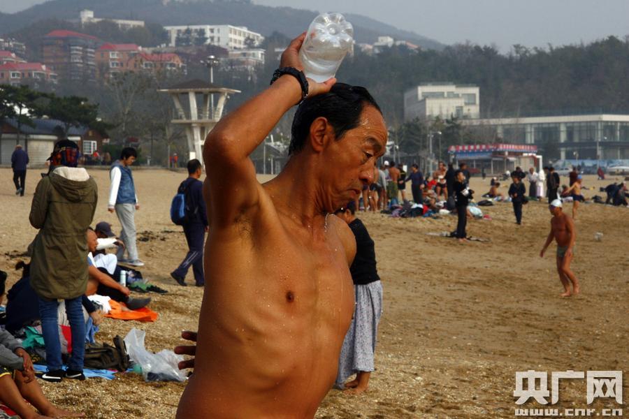 冬泳的老人們(央廣網(wǎng)記者賈鐵生 攝) 央廣網(wǎng)大連11月1日消息(記者張四清 賈鐵生)2017年11月1日下午,遼寧省大連市傅家莊海濱浴場里,數(shù)十名大連市冬游協(xié)會的老人在此冬游。大連市冬游協(xié)會秘書長韓俊龍告訴記者,協(xié)會有26支隊伍,共計2千多名會員,大家在樂于冬游之時,還經(jīng)常在海邊撿拾垃圾,救護溺水人員,越來越多的人加入到冬游的隊伍中。 在冬游的人群中,有兩位80多歲的老人,老人堅持冬游已經(jīng)20多年了。老人說,堅持冬游自己的感冒少了,心情也愉悅了許多,為兒女和社會減輕負擔(dān),希望大家通過冬游強身健體,有生之年還能為社會出一份力,為中國夢的早日實現(xiàn)添磚加瓦。 -