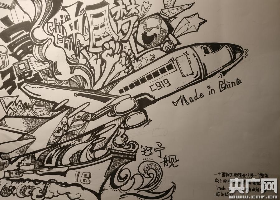 大連工業(yè)大學(xué)學(xué)生手繪畫出新時(shí)代(央廣網(wǎng)記者 賈鐵生 攝) -