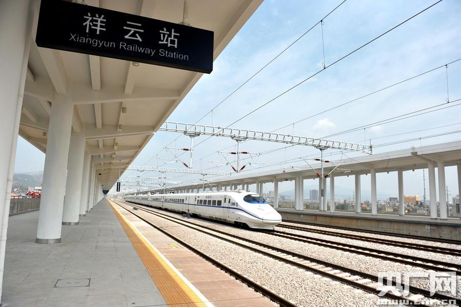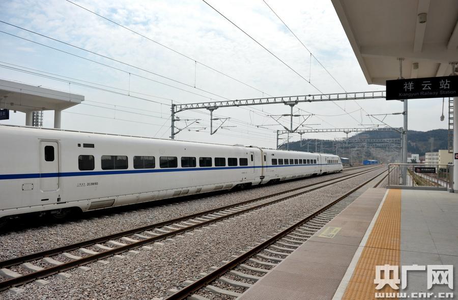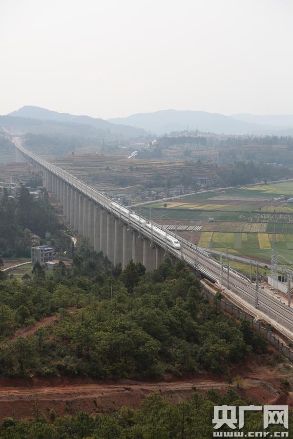 綜合檢測(cè)動(dòng)車從云南省楚雄州廣通北站始發(fā)。張偉明攝 央廣網(wǎng)大理4月20日消息(記者李健飛 通訊員張偉明 韓富關(guān))4月18日上午10時(shí)許,一列銀白色的綜合檢測(cè)動(dòng)車從云南省楚雄州廣通北站始發(fā),一路向西疾馳奔向大理,標(biāo)志著中緬國際通道昆(明)廣(通)大(理)鐵路開始聯(lián)調(diào)聯(lián)試,昆明至大理開行動(dòng)車進(jìn)入倒計(jì)時(shí)。 昆廣大鐵路從昆明出發(fā),途經(jīng)廣通、楚雄、祥云等地終至大理,全線開通運(yùn)營后,昆明至大理2小時(shí)以內(nèi)可到達(dá),3小時(shí)左右抵達(dá)麗江。 聯(lián)調(diào)聯(lián)試以昆廣大鐵路達(dá)到設(shè)計(jì)速度為目標(biāo),主要內(nèi)容包括檢測(cè)軌道、路基、橋梁、隧道、牽引供電、接觸網(wǎng)、通信、信號(hào)、客運(yùn)服務(wù)、自然災(zāi)害及異物侵限監(jiān)測(cè)系統(tǒng)、綜合接地、聲屏障等內(nèi)容。在此期間,通過開行試驗(yàn)列車,對(duì)軌道、電路、通信、接觸網(wǎng)等設(shè)備設(shè)施進(jìn)行全面試驗(yàn),對(duì)存在的問題進(jìn)行克缺,確保運(yùn)營后行車安全穩(wěn)定,聯(lián)調(diào)聯(lián)試預(yù)計(jì)需要三個(gè)月左右完成并于年7月份達(dá)到開通條件。 中國鐵建電氣化局北方公司廣大鐵路項(xiàng)目經(jīng)理郭文宇介紹,廣通到大理段地處海拔2000米左右的高原,從廣通到大理海拔提升了230米,意味著每公里就要提升1.4米,這樣對(duì)動(dòng)車組的取流有較高要求,為此他們專門進(jìn)行工藝創(chuàng)新,主變壓器以及接觸網(wǎng)供電臂等設(shè)備由原來的雙線增加為四線,確保供電安全,這樣的工藝創(chuàng)新在全國都不多見。 據(jù)了解,昆廣大鐵路是中緬國際通道和滇藏鐵路的重要組成部分,東端通過昆明站和昆明南站連通全國鐵路網(wǎng),西端連接在建和既有的大瑞、大臨、大麗鐵路。 大理作為滇西地區(qū)的交通樞紐,昆廣大鐵路貫通將輻射麗江、臨滄、迪慶、保山等少數(shù)民族聚集區(qū),這不僅有利于改善民族地區(qū)的交通環(huán)境,更有助于精準(zhǔn)扶貧和民族團(tuán)結(jié)。對(duì)加強(qiáng)滇西地區(qū)路網(wǎng)運(yùn)輸能力,構(gòu)筑起云南與內(nèi)地及南亞東南亞的溝通交流大通道,更好地助推云南服務(wù)和融入“一帶一路”具有重要意義。
