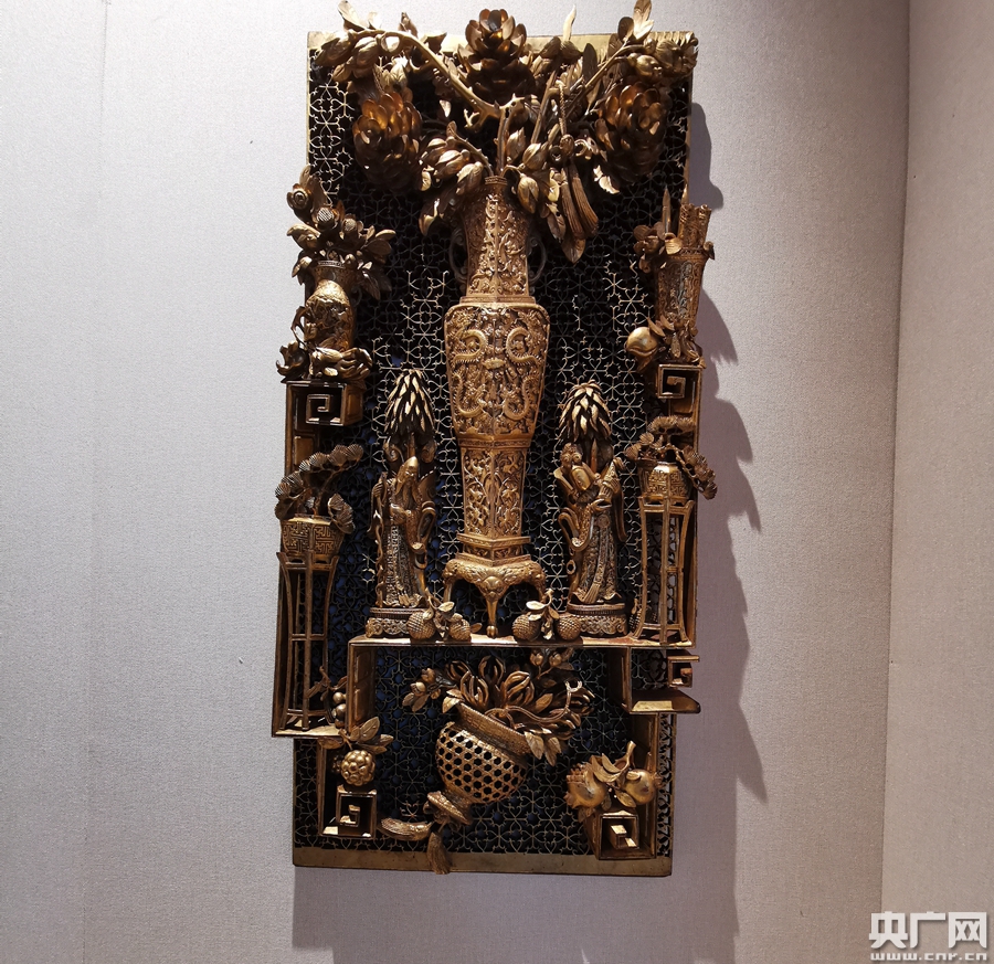 “不辭長作嶺南人——荔枝文化展”在廣東省博物館開幕。圖為清通雕博古紋窗花(央廣記者 鄭澍 攝)