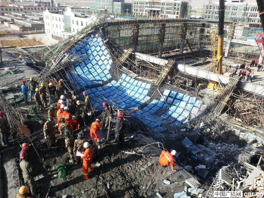 青海省海西州大柴旦建筑工地坍塌現(xiàn)場(央廣網(wǎng)記者 楊陽 攝)
