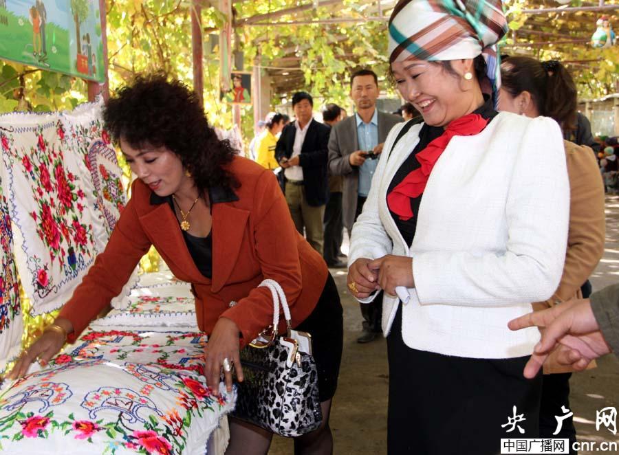 新疆庫(kù)車(chē)縣墩坦闊鎮(zhèn)舉辦農(nóng)家婦女刺繡作品展(央廣網(wǎng)記者 張雷 攝)