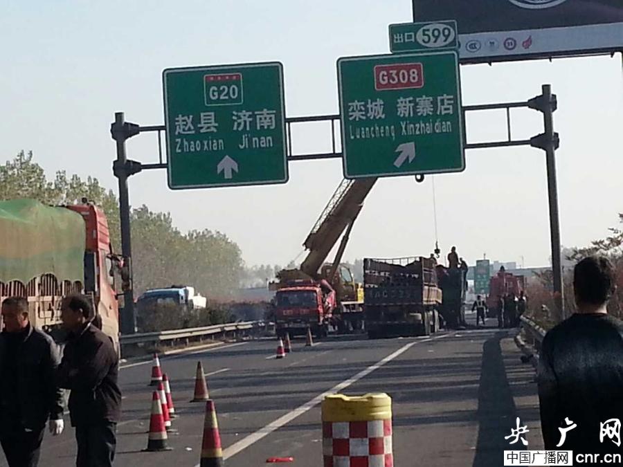 青銀高速欒城段發(fā)生重大交通事故,兩輛大車相撞。(央廣網(wǎng)記者 明慧 攝)