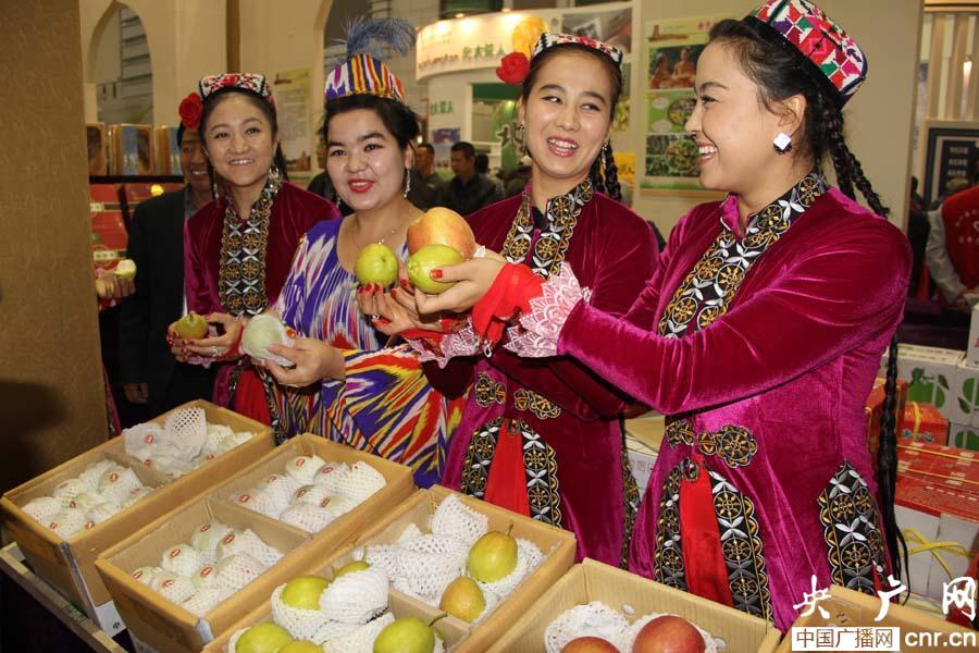 央廣網(wǎng)寧波11月16日消息(記者張雷 通訊員索善武 范紅英)昨天,在寧波舉行的中國食品博覽會(huì)上,來自新疆庫車縣的農(nóng)產(chǎn)品企業(yè)、林果合作社等13家單位帶著當(dāng)?shù)丶t棗、核桃、香梨等20多種特色優(yōu)質(zhì)產(chǎn)品進(jìn)行展銷,隨行的庫車歌舞團(tuán)演員還在現(xiàn)場(chǎng)為寧波市民奉獻(xiàn)了精彩的新疆民族歌舞節(jié)目,盡顯新疆作為中國瓜果之鄉(xiāng)、歌舞之鄉(xiāng)的魅力。