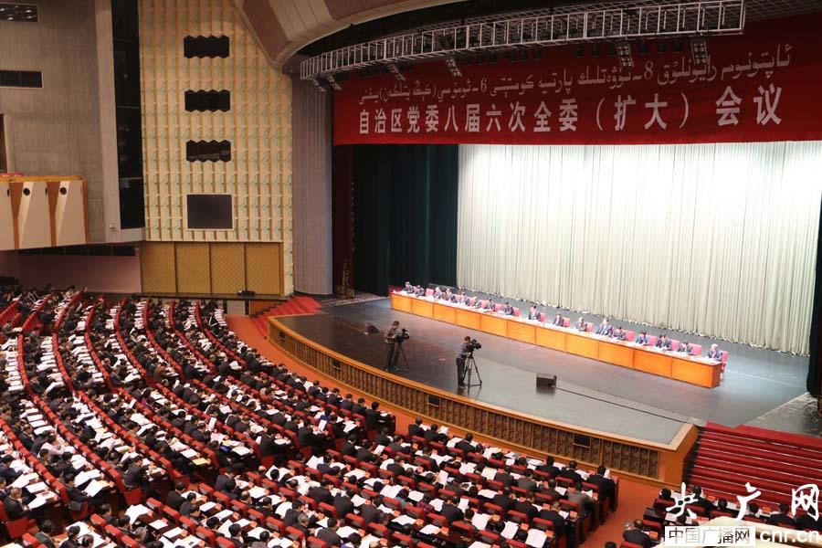新疆維吾爾自治區(qū)黨委八屆六次全委(擴(kuò)大)會(huì)議召開(kāi)(央廣網(wǎng)記者 吳卓勝 攝)