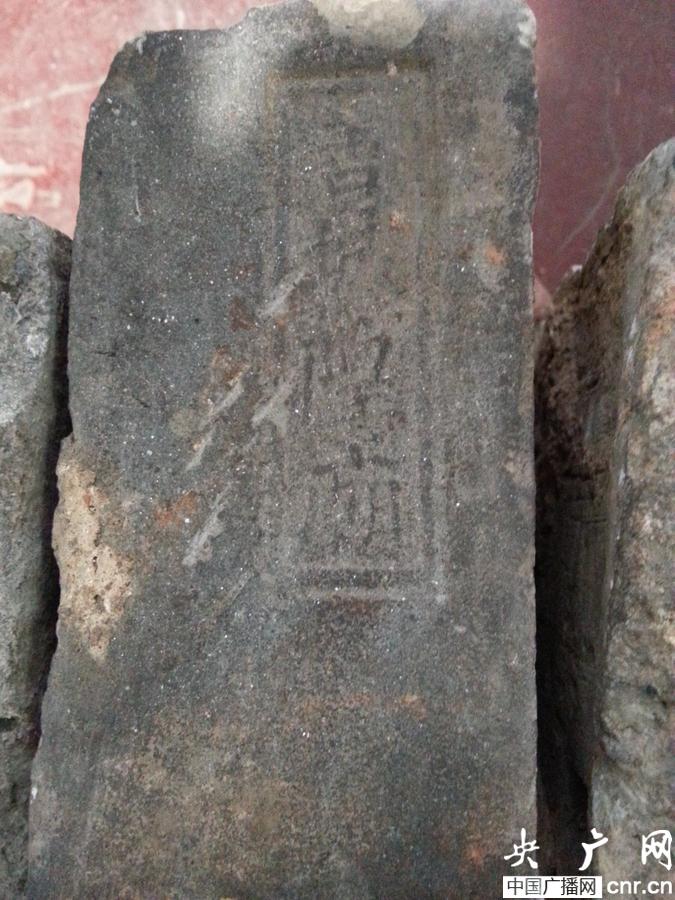 居民家中找到的廚神詹王宮的界碑(央廣網(wǎng)記者 鄧文輝 攝)