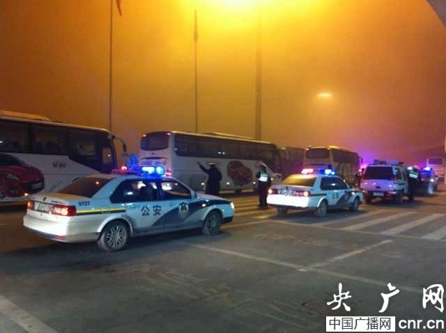 8日夜間,交警在機(jī)場高速指揮疏導(dǎo)。(央廣網(wǎng)記者 景明 攝)