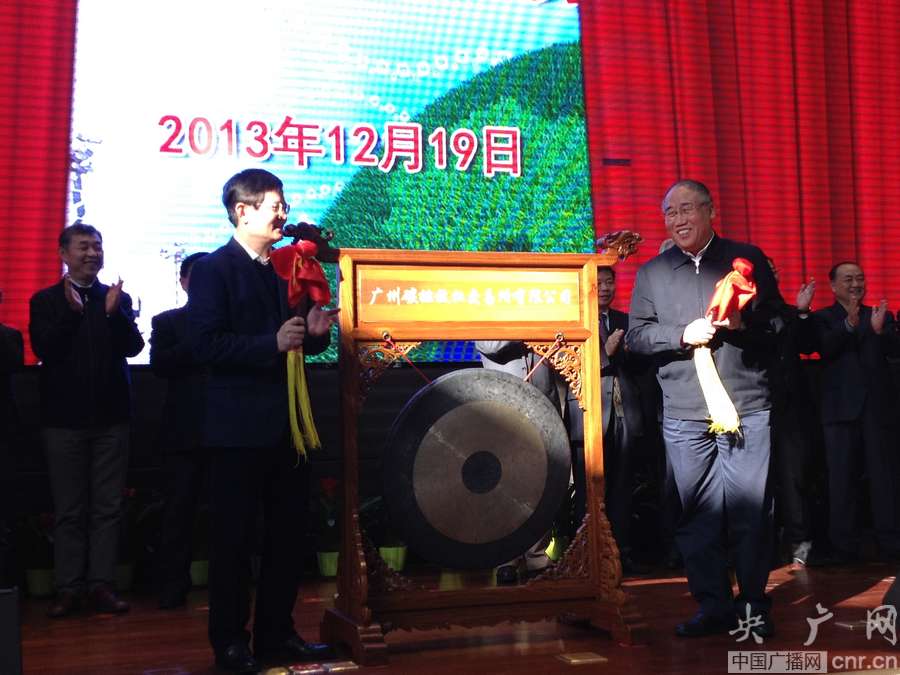 國家發(fā)展改革委副主任解振華和廣東省委常委、常務(wù)副省長徐少華在廣州碳排放權(quán)交易所共同敲響了碳排放權(quán)交易市場開市鑼,標(biāo)志著廣東省碳排放權(quán)交易市場正式啟動。(央廣網(wǎng)發(fā) 何偉奇 攝)