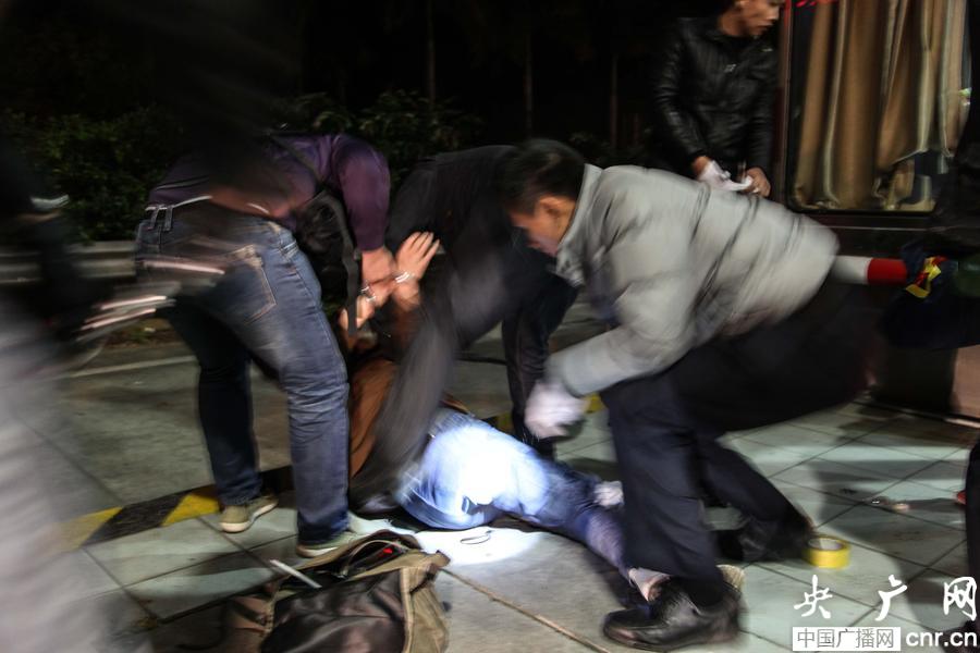 民警抓捕犯罪嫌疑人(央廣網(wǎng)記者 張壘 攝)