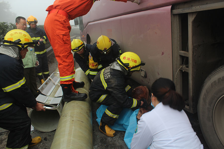 據(jù)記者現(xiàn)場(chǎng)了解,事發(fā)地先后發(fā)生兩起連環(huán)追尾事故,第一起事故造成包括1輛食用油罐車、2輛小轎車、3輛大客車和5輛大貨車在內(nèi)的11輛車連環(huán)追尾相撞,其中一輛客車還發(fā)生側(cè)翻。事故發(fā)生后,大量玻鋼管、鋼筋等貨物撒落一地,整個(gè)交通完全中斷。而距離第一現(xiàn)場(chǎng)不到300米處,1輛小轎車和2輛貨車因閃避不及再次發(fā)生追尾和擦碰事故。消防員和120到場(chǎng)后,迅速對(duì)死傷者展開(kāi)救援,高速交警部門(mén)也第一時(shí)間對(duì)現(xiàn)場(chǎng)實(shí)施了交通管制。