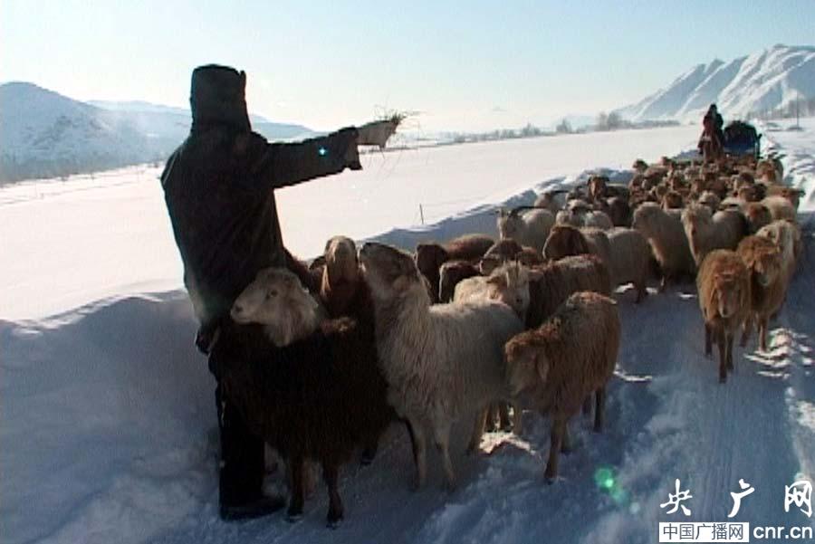 阿勒泰地區(qū)富蘊縣畜牧獸醫(yī)站站長恰布旦介紹:針對這次降溫降雪,我們用了兩天時間去了解克仔勒希力克鄉(xiāng)、吐爾洪鄉(xiāng)和庫爾特鄉(xiāng)牧民牲畜過冬情況,我們的獸醫(yī)也在冬牧場隨時監(jiān)測牲畜疾病,現(xiàn)在我們冬牧場儲備了三百噸飼草料,如果繼續(xù)降溫降雪,牧民就能使用這些飼草料。