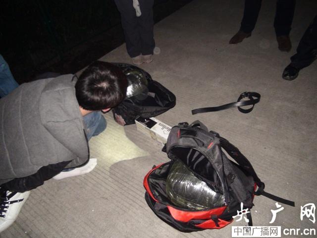 深圳海關(guān)緝私人員在嫌疑人背包里搜出包扎嚴密的毒品(央廣網(wǎng)發(fā) 張業(yè)成 攝)