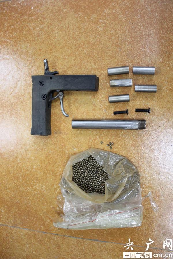 隨后,民警將該男子帶至執(zhí)勤室做進(jìn)一步審查。經(jīng)進(jìn)一步審查,持當(dāng)日廣州至西安的T264次車票進(jìn)站的該名男子姓魏,在深圳一家五金工廠打工,精通機(jī)械制造手藝,其行李中的仿真槍和三把菜刀是他平時(shí)利用工廠的原材料和設(shè)備自制而成的。當(dāng)民警問及這些違禁品的用途時(shí),魏某自稱菜刀是準(zhǔn)備拿給家人使用的,仿真槍和鋼珠是自己用來點(diǎn)火的。