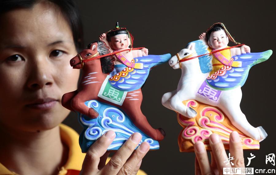 據(jù)介紹,這對由工藝美術(shù)大師喻湘蓮女士設(shè)計的名為“一馬當(dāng)先福娃”泥塑作品,將民間傳統(tǒng)福娃的形象和馬的形象融合,色彩艷麗,神采奕奕,其中男孩騎赤兔寶馬,女孩騎白龍飛馬,福娃手抓韁繩,好比跨山河,穿云海,虎虎生風(fēng),疾馳而行,寓意策馬揚鞭,積極進(jìn)取,力爭美好生活的精神面貌。