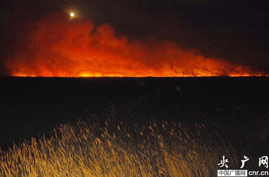 新疆博斯騰湖蘆葦燃起大火(央廣網(wǎng)發(fā) 達林塔 攝)