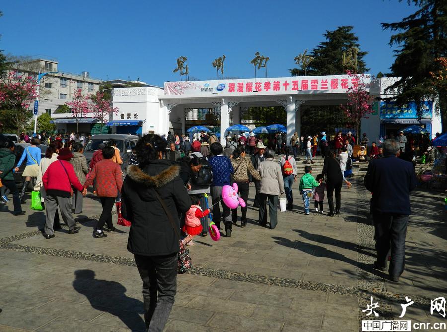 眾多游客到昆明圓通山公園(圓通動物園)賞花(央廣網(wǎng)記者 李騰飛 攝)