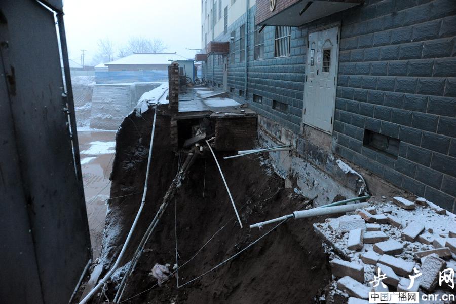 央廣網(wǎng)蘭州3月8日消息(記者焦健 通訊員李鵬博 羅明偉)3月7日,甘肅省慶陽市西峰區(qū)一住宅小區(qū)因為工地施工造成自來水管破裂,致使居民住宅樓單元門前約20平米的土地塌陷消失,兩名住戶出門時不慎跌入深坑,樓內住戶被困。當?shù)叵啦筷牻泳竭_現(xiàn)場后,從該住宅樓1樓住戶家的客廳破拆出逃生通道,將樓內60余名被困人員成功疏散。