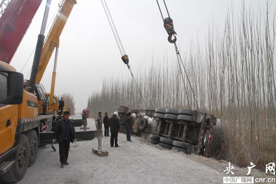 油罐車輛側(cè)翻路邊(央廣網(wǎng)記者 吳卓勝 攝)