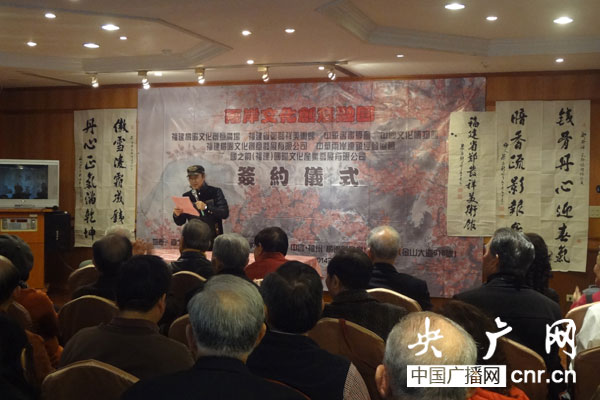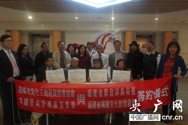 央廣網(wǎng)北京3月25日消息(記者 于聞)以“兩岸文化,創(chuàng)意融圓”為主題的兩岸文化聯(lián)盟,于2014年3月21日至25日分別在臺(tái)北、新竹、高雄、臺(tái)南等地舉行了聯(lián)合簽約儀式。