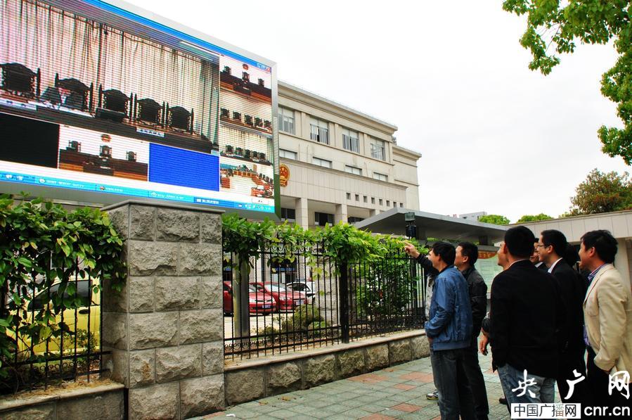 當(dāng)天上午的庭審持續(xù)了一個半小時,該院通過安裝在大門處的LED大屏幕對此案進(jìn)行了現(xiàn)場直播,不時有路人駐足觀看。該院信息技術(shù)科負(fù)責(zé)人介紹說,該院歷時1個月,完成了LED大屏幕的安裝及調(diào)試工作,大屏幕面積12平方米,畫面、音質(zhì)清晰,便于觀看。