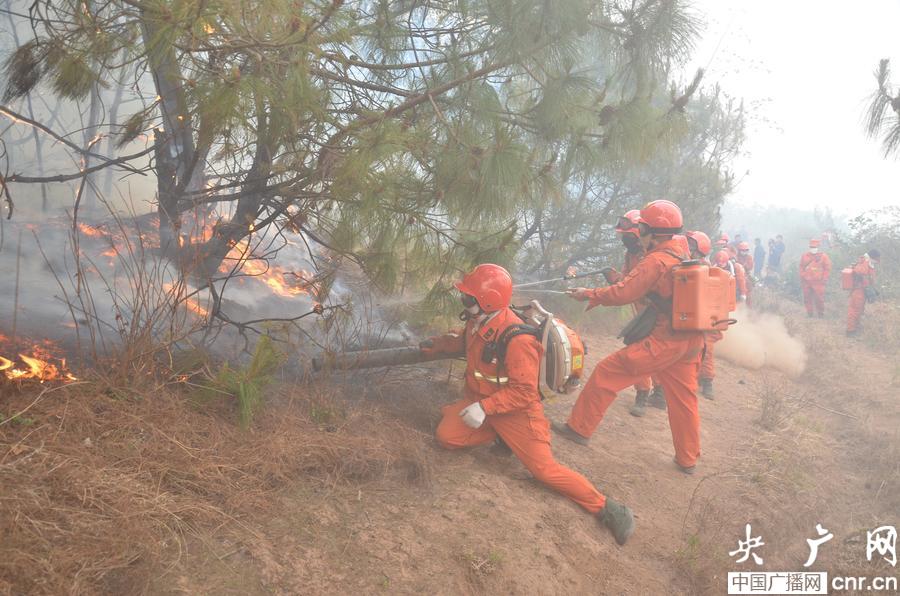 為徹底撲滅西線火場,奪取滅火作戰(zhàn)的全面勝利,5月2日11時,支隊所屬直屬、大理、永平、漾濞四個中隊在西線火場集結(jié),所屬大理中隊40名官兵依托消防車,利用水泵直接撲打火場明火,直屬中隊25名官兵跟進撲打明火;永平、漾濞中隊62名官兵對所有煙點、倒木、樹冠火進行徹底清理,經(jīng)過全體參戰(zhàn)官兵及地方群眾的共同努力,13時55分,火場西線明火全部撲滅,現(xiàn)部隊正在反復清理。