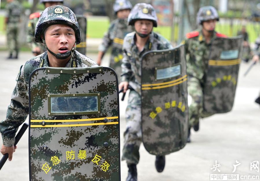 廣東深圳:全國(guó)首支街道反恐民兵分隊(duì)舉行反恐演練(央廣網(wǎng)發(fā) 廖鍵 攝)