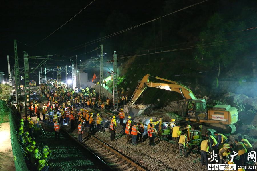 5月28日晚,成都鐵路局組織2000多名施工作業(yè)人員,從19點(diǎn)到次日8點(diǎn),奮戰(zhàn)一個(gè)通宵,完成兩處線路撥接施工。此后,寶成鐵路改道徹底避開危巖體,列車安全運(yùn)營更有保障。