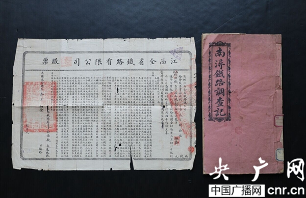 央廣網(wǎng)南昌6月6日消息(記者胡嘯 通訊員余揚(yáng)、曾勤生)近日,南昌市檔案館為籌建特藏庫(kù)在對(duì)館藏檔案進(jìn)行甄選時(shí),又發(fā)現(xiàn)了一張清末南潯鐵路股票和一冊(cè)《南潯鐵路調(diào)查記》。
