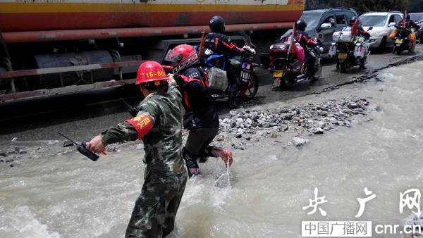 截止12日12時(shí)許,經(jīng)過武警交通二支隊(duì)六中隊(duì)官兵晝夜艱苦鏖戰(zhàn),搶修便道200余米,成功打通受阻路段,保證了210多臺(tái)受阻車輛、1500余名被困人員安全順利通過。