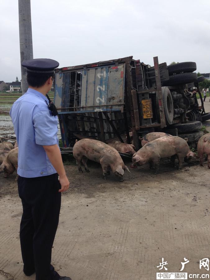 上海:運(yùn)豬貨車不慎側(cè)翻 60只豬糟蹋農(nóng)田