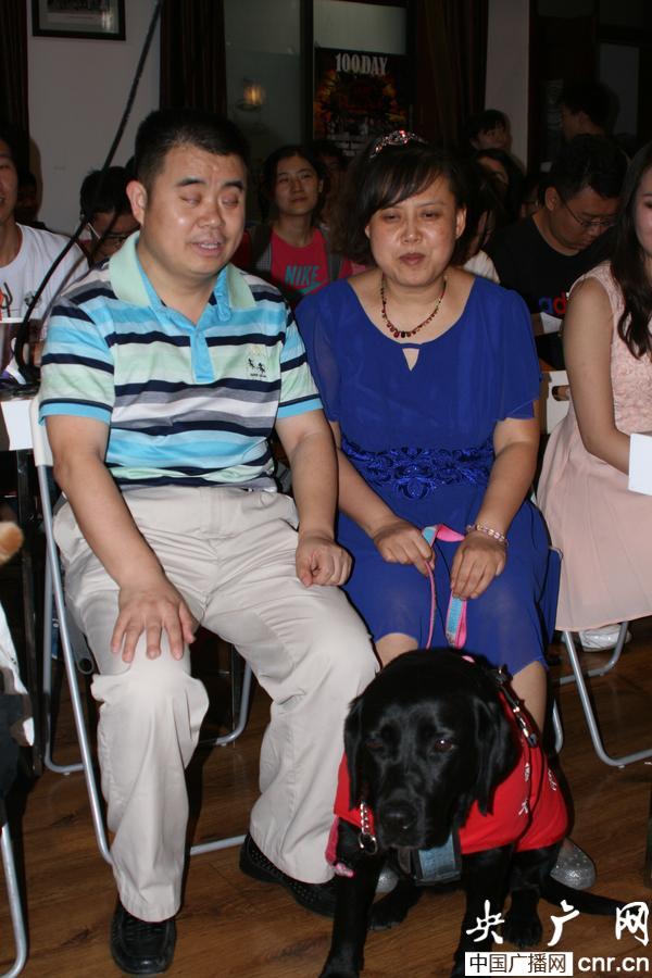 導(dǎo)盲犬珍妮和爸爸媽媽在一起。(央廣網(wǎng)發(fā) 時晨 攝)