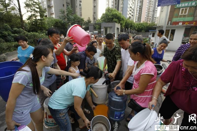 “家里老的老,小的小,沒有水怎么辦,連做飯的水都沒得”,排在接水隊(duì)伍中的黃婆婆看到消防官兵,趕緊向救援人員訴苦。不到20分鐘,4輛消防車30余噸水就被分發(fā)一空,加上區(qū)環(huán)衛(wèi)局3輛大型水罐車趕來支援,暫時(shí)解決了居民們的燃眉之急。