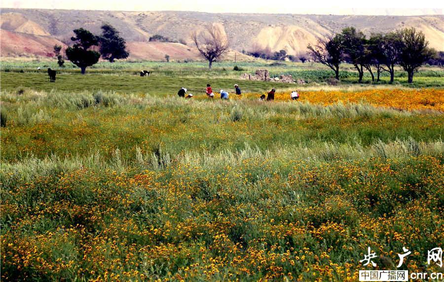 游客體驗采摘雪菊(央廣網(wǎng)記者 張雷 攝)