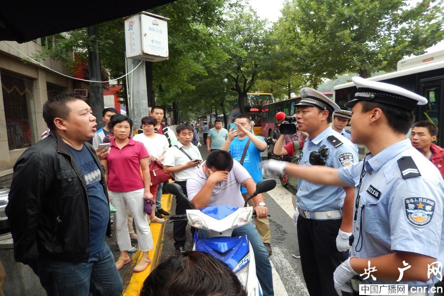 記者趕到西安市南稍門十字時(shí)看到,西安交警支隊(duì)民警與文明交通志愿者正在現(xiàn)場(chǎng)維持交通秩序,為行人講解《安全條例》規(guī)定。據(jù)介紹,從下午三點(diǎn)至三點(diǎn)二十分之間,西安市交警支隊(duì)共開(kāi)出了6例罰單。其中,行人闖紅燈50元罰單兩例,電動(dòng)自行車載人50元罰單4例。