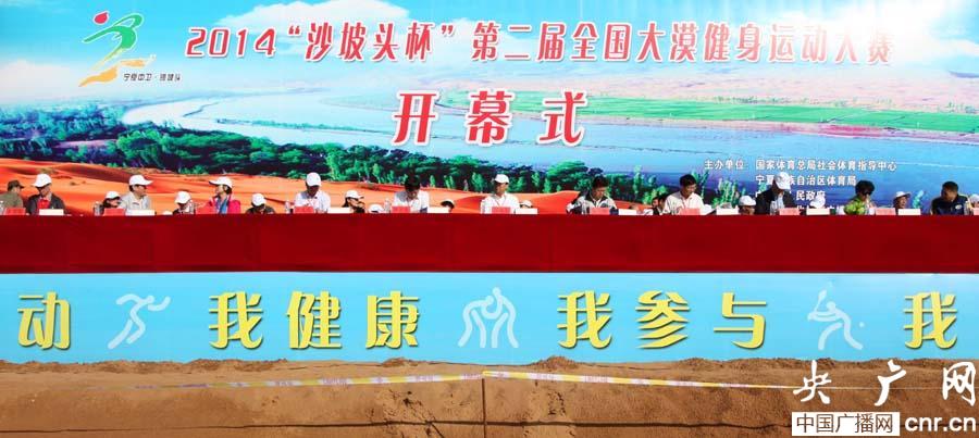 央廣網(wǎng)中衛(wèi)9月3日消息(記者許新霞 胡鈺)月2日上午,由國(guó)家體育總局、寧夏回族自治區(qū)體育局、中衛(wèi)市人民政府主辦的2014“沙坡頭杯”第二屆全國(guó)大漠健身運(yùn)動(dòng)大賽在中衛(wèi)市開(kāi)賽,寧夏回族自治區(qū)副主席、中衛(wèi)市委書記馬廷禮、國(guó)家體育總局的有關(guān)領(lǐng)導(dǎo)出席大賽開(kāi)幕式。
