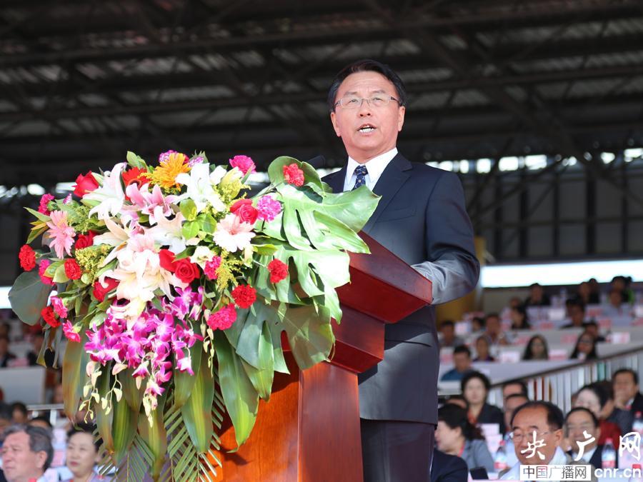 中央祝賀團(tuán)團(tuán)長(zhǎng)、國(guó)家民委黨組副書(shū)記、副主任李昭致辭(央廣網(wǎng)記者 張雷 攝)