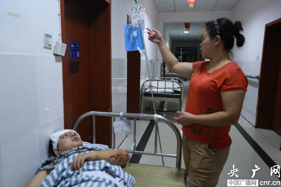 傷者親人在醴陵中醫(yī)院進(jìn)行護(hù)理 (央廣網(wǎng)發(fā) 王海迪 攝)