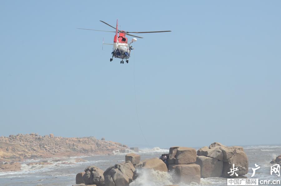 10月12日,平潭邊防、平潭海事以及東海救援中心海陸空聯(lián)動(dòng),緊急救助被困島礁群眾 (朱少帥 攝)