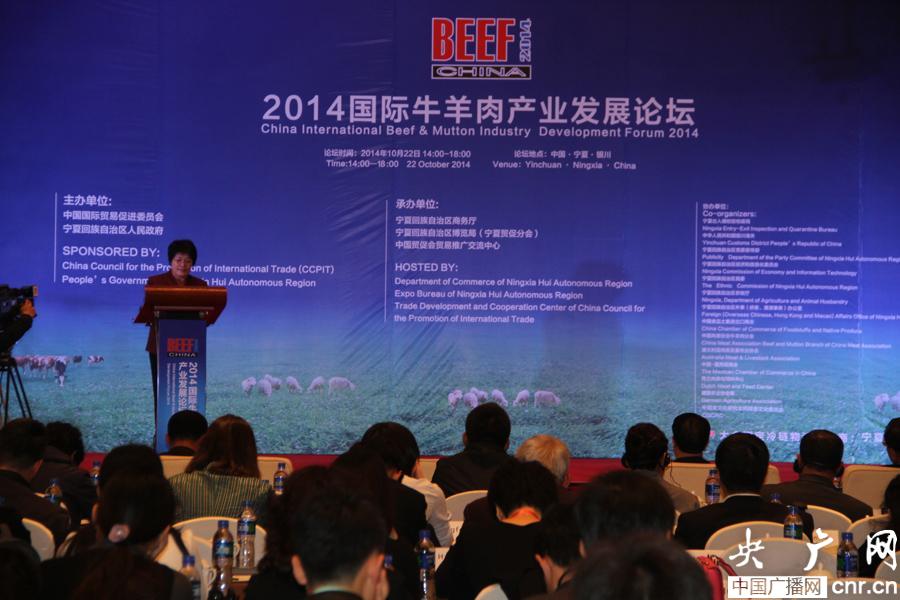 本次論壇分為論壇開幕式、主旨發(fā)言、重點國與中國大型牛羊肉進口企業(yè)交流座談和互動交流環(huán)節(jié)4個部分。中國貿(mào)促會秘書長,寧夏回族自治區(qū)有關領導做了重要致辭,中外客商代表分別代表國內(nèi)外展商發(fā)言。中外有關行業(yè)協(xié)會、企業(yè)代表分別作了主旨發(fā)言。