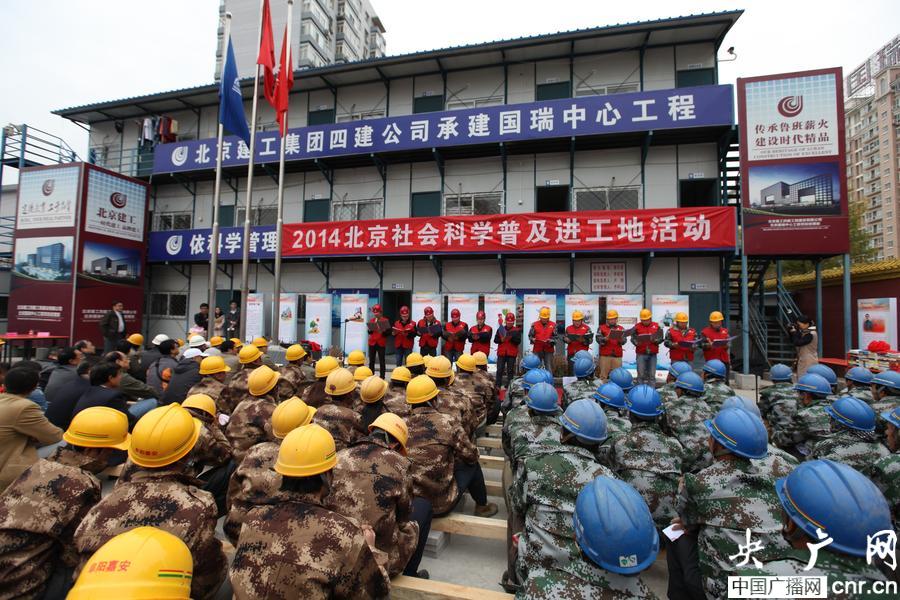 北京開(kāi)展“2014社科普及周——社科進(jìn)工地”活動(dòng)(央廣網(wǎng)記者 李文蕊 攝)