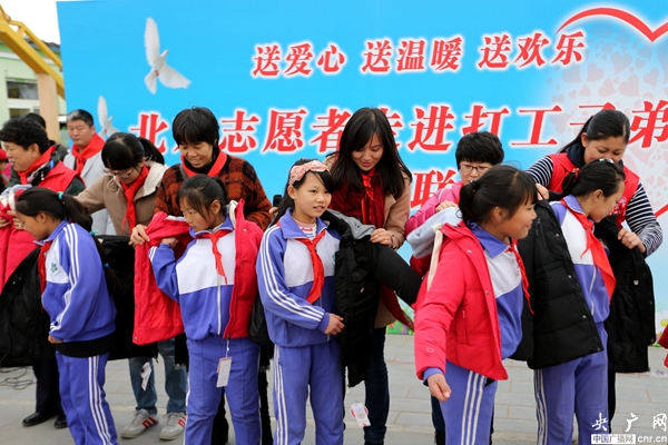 北京志愿者走進(jìn)打工子弟小學(xué)公益聯(lián)歡會舉行(央廣網(wǎng)記者 李文蕊 攝)