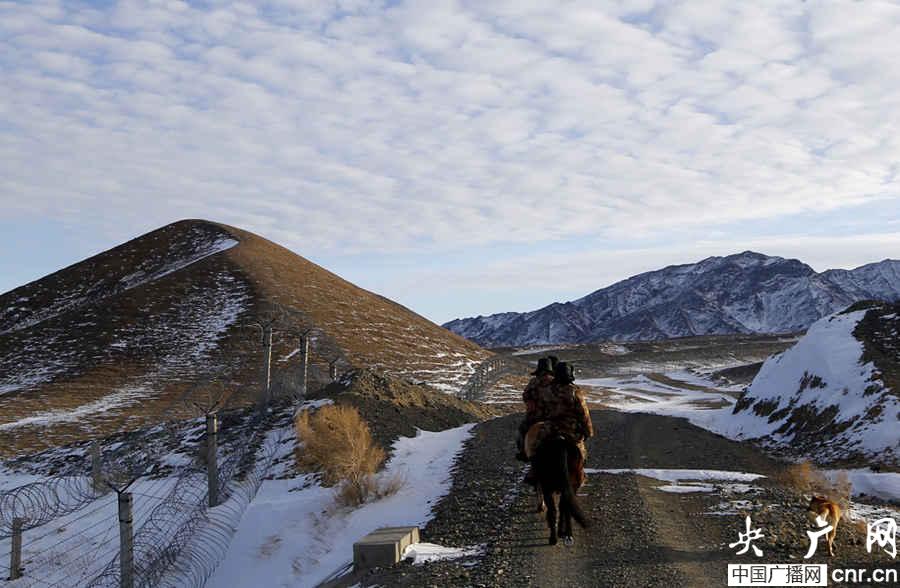 11月底的塔克什肯已是銀裝素裹,最低氣溫已達(dá)到零下35度。有的邊境地區(qū)已被大雪覆蓋,道路不通。為加強(qiáng)邊邊境管控,防止發(fā)生涉外問(wèn)題,塔克什肯邊防連組織巡邏分隊(duì)乘馬對(duì)中蒙邊境實(shí)施巡邏。官兵們?cè)谶吘尘上時(shí)而騎馬穿越蘆葦叢,時(shí)而牽馬通過(guò)被雪覆蓋的山溝,還不時(shí)停下來(lái)定點(diǎn)觀察,構(gòu)成一道靚麗的風(fēng)景線。