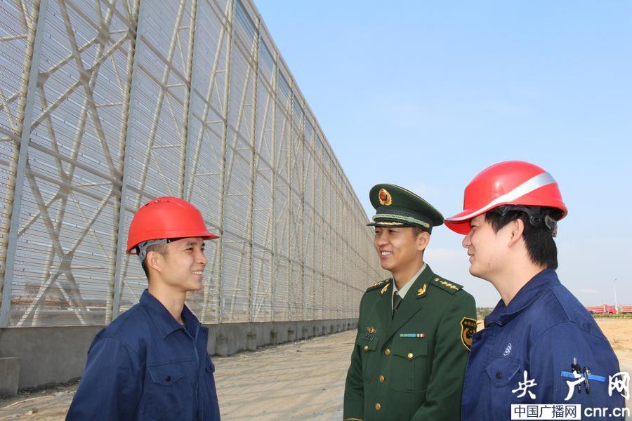 拼經(jīng)濟(jì)更重環(huán)保。11月28日,在福建省莆田市東吳港區(qū)高達(dá)18米藍(lán)色防風(fēng)網(wǎng)前,負(fù)責(zé)碼頭監(jiān)護(hù)的莆田邊防檢查站正向工人宣傳環(huán)保理念。據(jù)邊檢警官卓志偉介紹,東吳港區(qū)東總投資超過22億多元,年吞吐量逾1000萬噸,目前在煤炭堆場豎立起防風(fēng)網(wǎng)全長1641.67米,總造價(jià)3100多萬元,對風(fēng)力進(jìn)行有效控制,最大限度地衰減來風(fēng)的動能,從而達(dá)到抑制揚(yáng)塵的“最后一公里”防護(hù)效果。